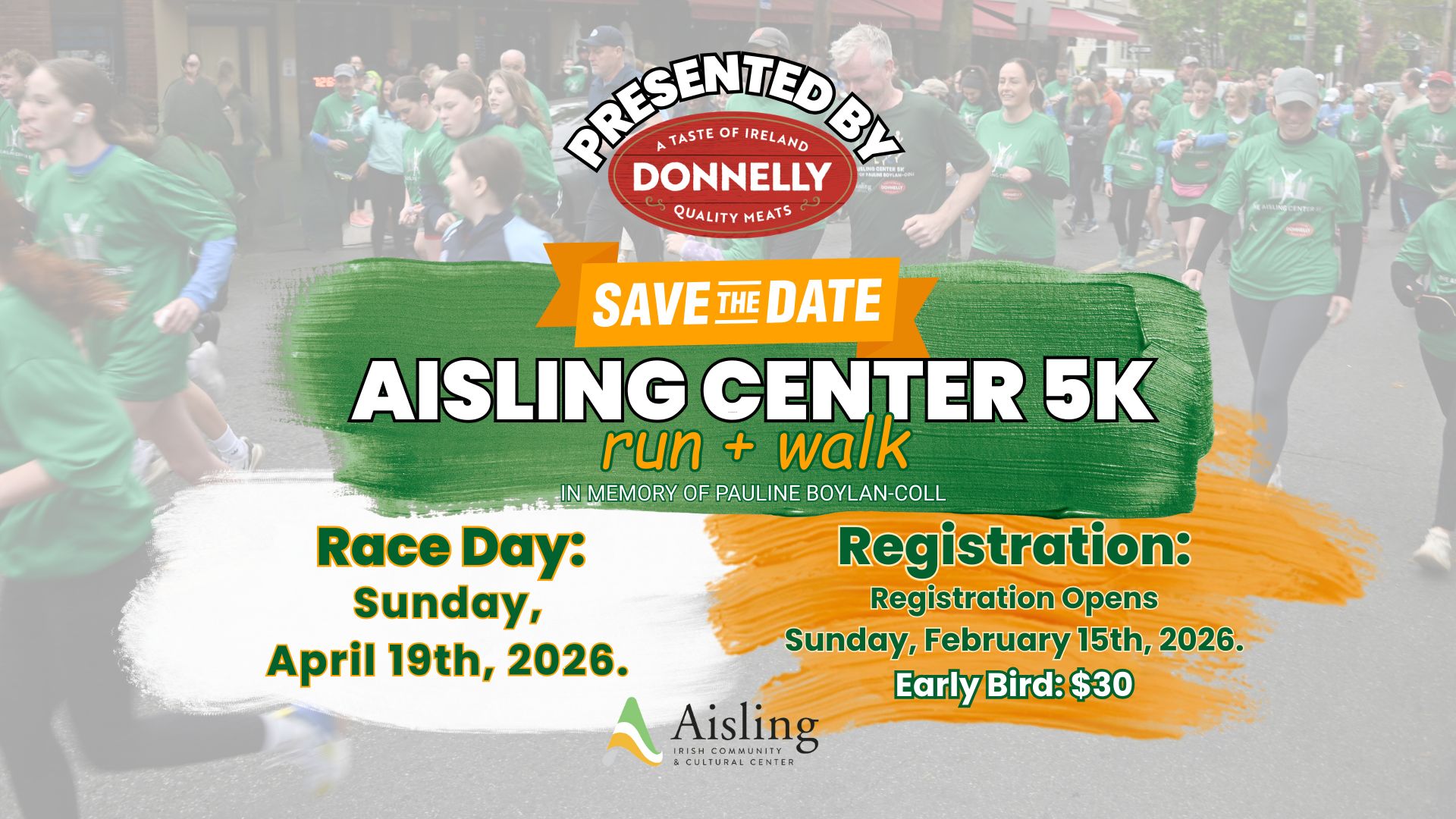The Aisling Center 5k Run and Walk in Memory of Pauline Boylan-Coll will be on Sunday, April 19, 2026!